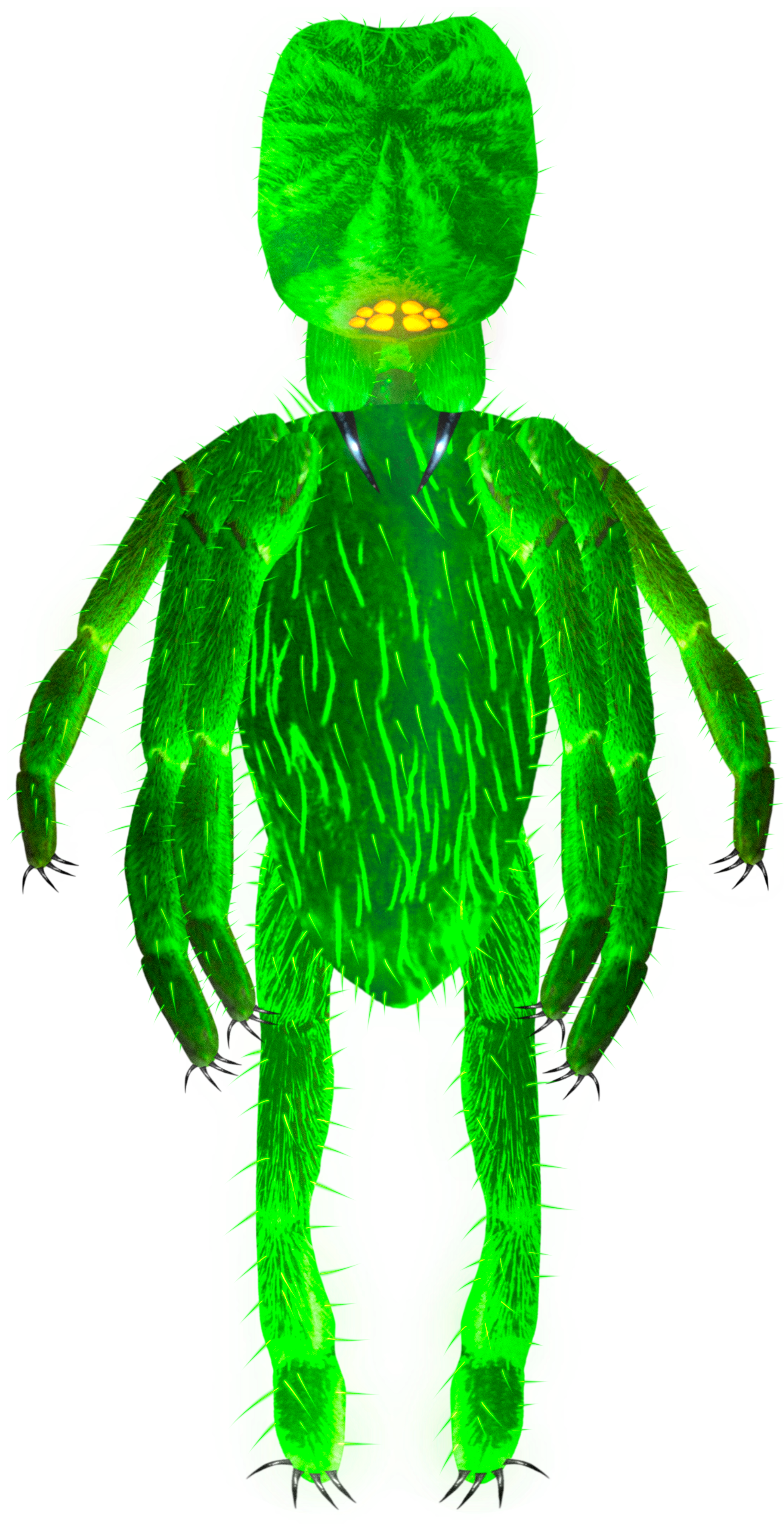 Unable to survive Earth’s oxygen-rich atmosphere, the organism hid its endospores inside prehistoric tarantulas, of the species Haplocosmia Himalayana, feeding on copper in their blood. Over generations, it absorbed arachnid DNA, adapted to oxygen, and became an adaptive, shapeshifting predator, capable of rewriting the genomes of its victims.